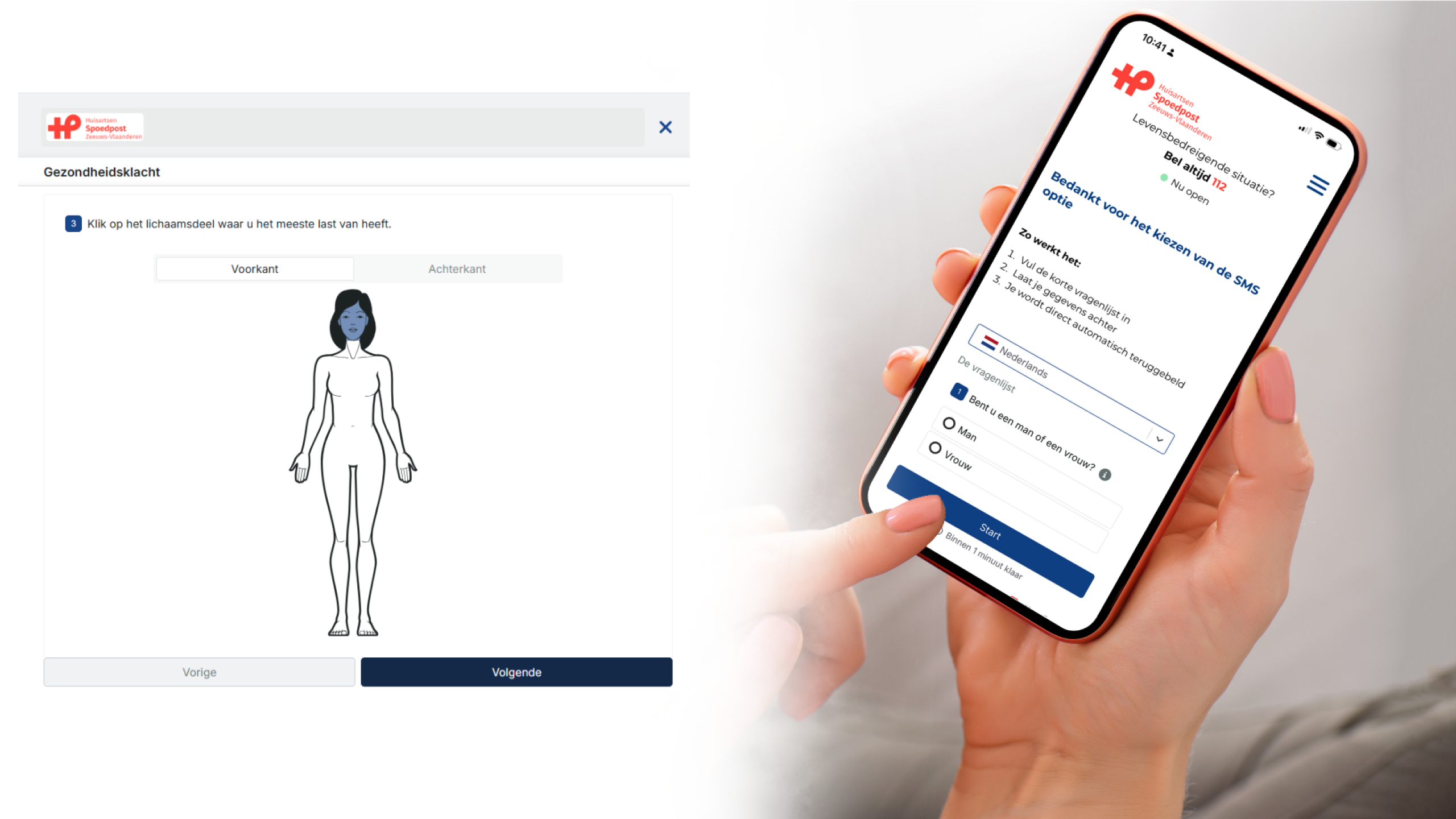 Bel je de huisartsenspoedpost, dan hoor je eerst dat je MINDD kunt gebruiken. Kies je dit, dan krijg je een sms met een link naar de vragenlijst.